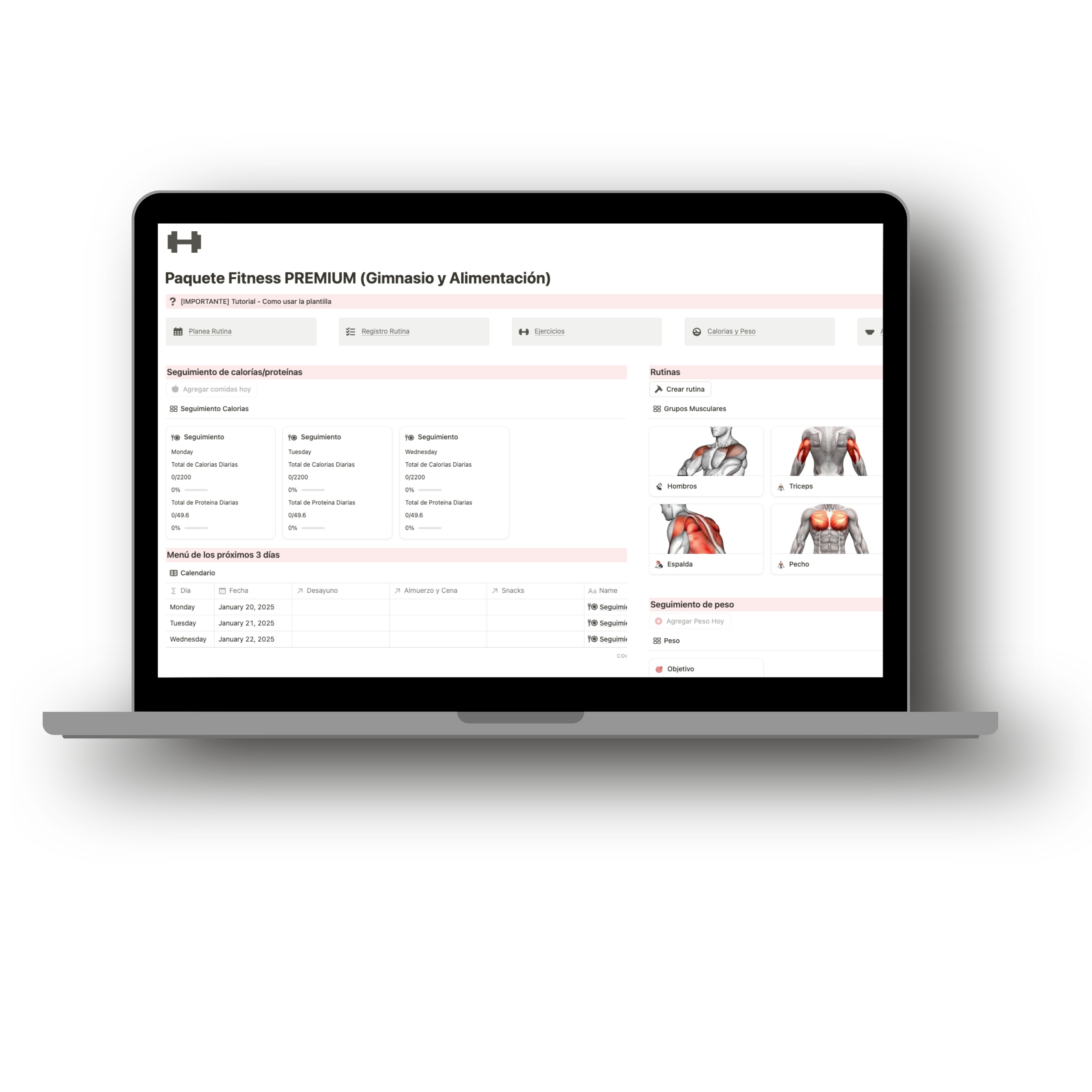 Ideal para automatizar rutinas de gimnasio semanales y diarias