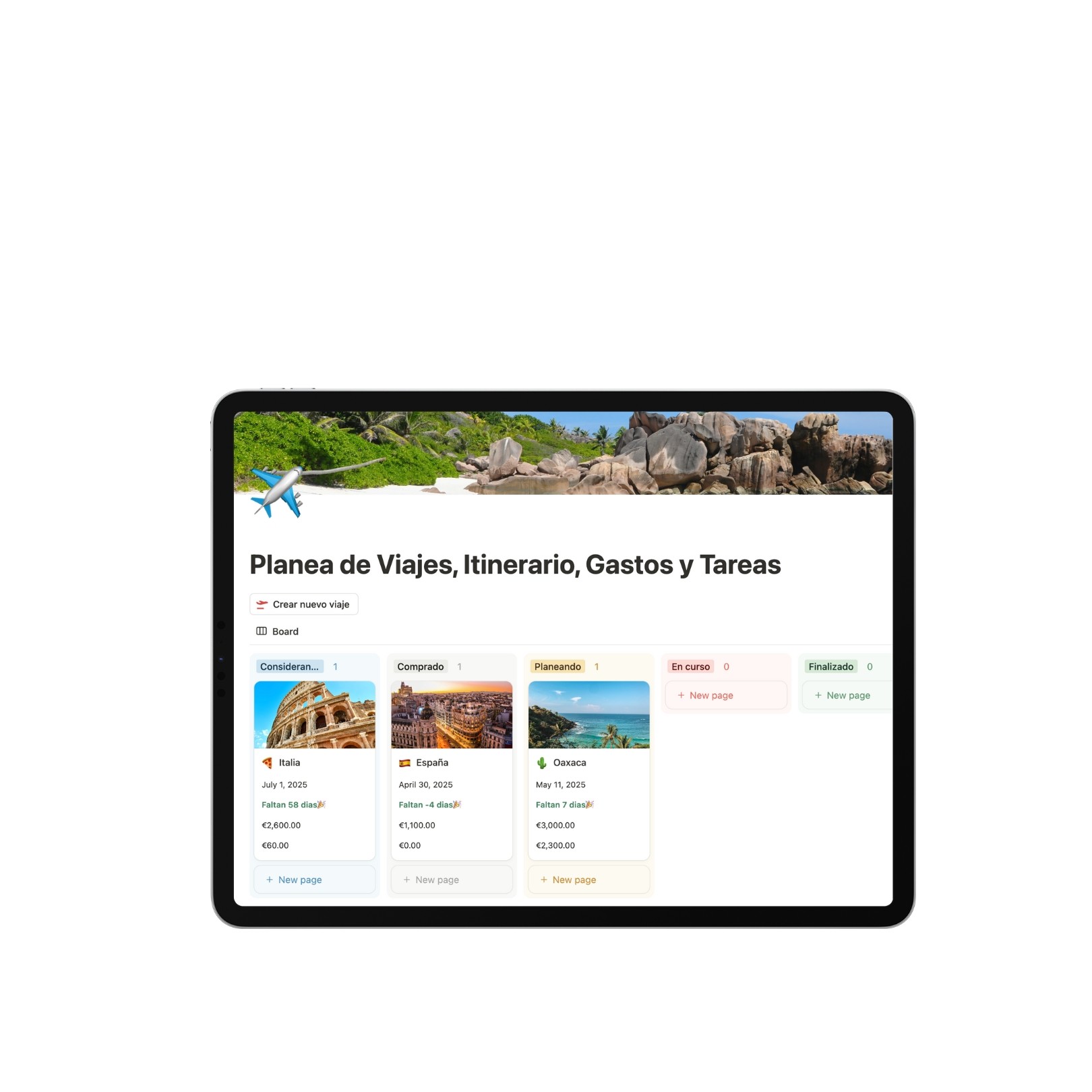 Planea tus viajes, itinerario, tareas, presupuesto, gastos y más